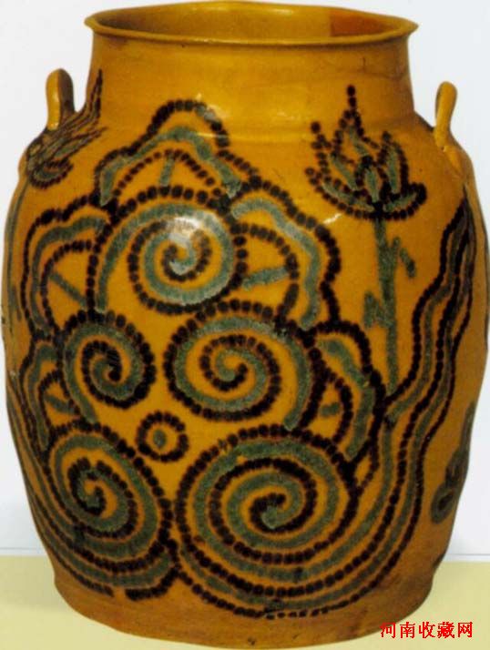 寿州窑:在今安徽省淮南市,唐属寿州,故名。共发现隋唐窑址六处,是唐代著名的黄釉瓷产地之一。其特征和鉴定要领是:(1) 隋代产品 1隋代烧青瓷,胎质坚硬,胎体较厚,胎色青灰;断面较粗,有大小不等的气孔和铁质斑点。 2釉色青中带黄或带绿,光泽很好。器物一般只施半釉,釉面常有小开片。 3装饰方法有印花、划花、贴花三种。划花有莲瓣纹、单弦纹、复弦纹、波浪纹等;贴花仅见卷草纹。图案的组成常采用带状或团花状。 4器形主要有四系瓶、高足盘、小口罐等(2) 唐代产品 1胎体比较厚重,胎色白中泛黄。 2釉色以黄为主,釉面光润,开小片纹,表层有透明的玻璃质感。大多施用化妆土,但釉与化妆土结合不牢,有剥落现象。 3采用3足支钉或托珠叠烧,碗、盘内心和底足留有3个支钉或托珠痕。 4器形有碗、盏、杯、钵、注子、枕、玩具等。器多数平底,有的底心微凹。碗、盏一类器足的边棱用刀削去。注子有多角形短流,枕为小长方形,都具有典型唐代风格。