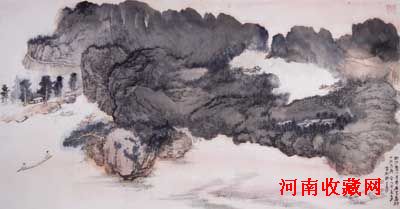 大千 《溪口泊舟图》68.5x133cm 紙本鏡心 成交价RMB 268.8万