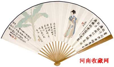 张大千《芭蕉仕女图》 ∥ 张大千 行书 张子野词《山亭宴》 大骨长40cm。十四股扇心。 成交价RMB 103万 专场中数件张大千先生的作品倍受推崇,封底拍品《赤壁夜游图》经由多次著录,保留原有装裱并配有象牙画轴,120万元起拍,最终235.2万元成交。另一张大千先生成熟时期的大尺幅作品《溪口泊舟图》以268.8万元的价格成交。张大千《芭蕉仕女图》成扇更是罕见,除了背面张氏书法以及叶恭绰先生两次题跋之外,扇骨也是大千先生订制,品质与品相都几近完美,从30万元起拍,报价一路直上,最终以103万的价格落入现场一位买家的囊中。更有创作于五代的一张佚名《五方五帝像》出版于大千先生编撰的《大风堂名迹•第四集•三》中,为大风堂旧藏,作品估价150万至180万元,最终以448万元成交,拔得本专场头筹。