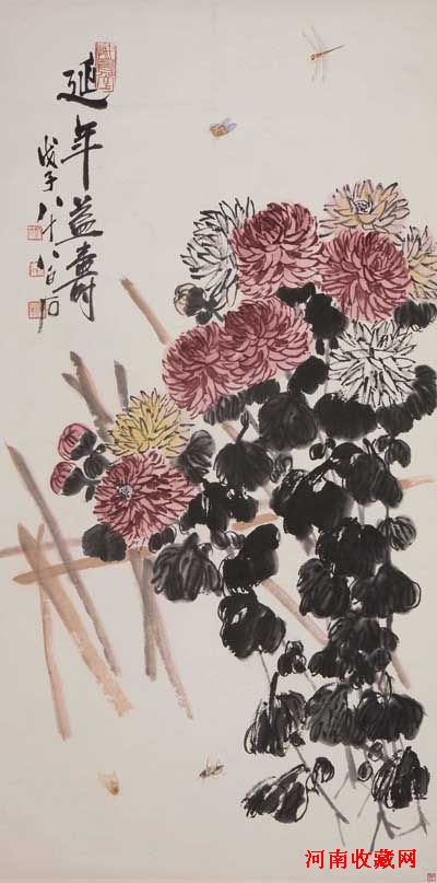 齐白石《延年益寿图》135×68cm 约8. 3平方尺 纸本立轴 1.《广州集雅斋旧藏1983-1993》P19,岭南美术出版社; 2.高士奇、蔡士等旧藏 成交价RMB 212.8万