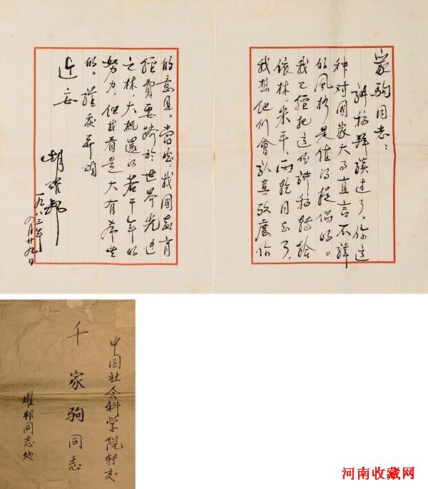 前国家领导人 《致千家驹手札》 成交价HKD149,500