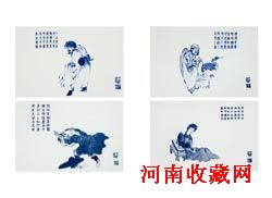 王步 青花传统人物故事瓷板 (一套)38.5×25.8cm