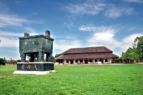 殷墟博物苑建在商代宫殿遗址之上,面积约430亩。该苑“茅茨土阶”、“四阿重屋”的建筑风格,具有古代帝王宫殿的宏伟气派。苑门:设计者匠心独运、独树一帜,仿造甲骨文象形字“门”建造,可谓开华夏门之先河,成为甲骨文发祥地的象征;司母戊鼎:国之重器,雄浑秀美、独领风骚,中国青铜时代的骄子;殷墟发掘史展:铺陈商史,带你步入中国考古学的诞生地;车马坑:气魄宏大,呈现商代皇家马车的风采;甲骨碑林:别具一格,碑刻正反面有原文和释文介绍,无疑是一座甲骨文入门的课堂;YH127甲骨窖穴:堆积如山的甲骨坑神密莫测,埋藏着一部商代经典史册;妇好墓:墓葬精品荟萃,再现出商代女将军的飒爽英姿;殷墟博物馆:国内第一家较专业、系统展示商代文物的地下博物馆。沿途众多露天展示的宫殿基址、祭祀窖穴,显示着与众不同的商代宫殿宗庙风貌。