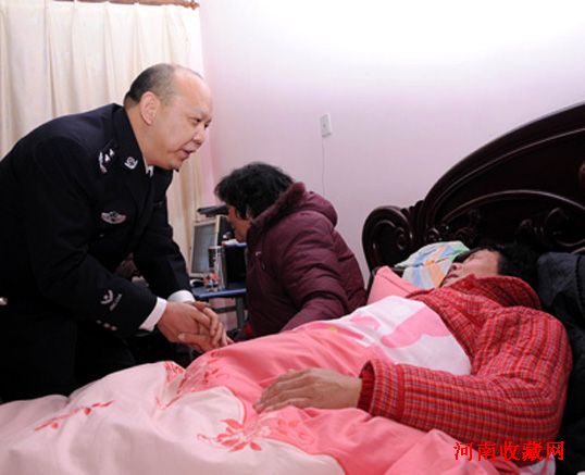 李建中握着李晓明母亲的手深情地说:“受公安部孟部长和秦玉海副省长的委托,今天专程来看望您们。”