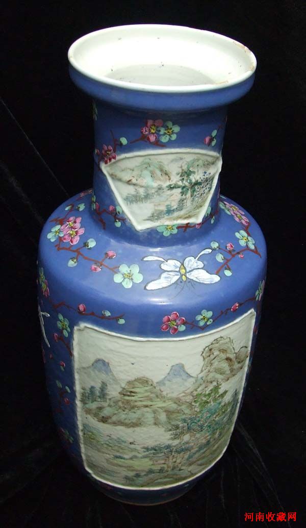 作品名称:蓝釉开光山水棒槌瓶