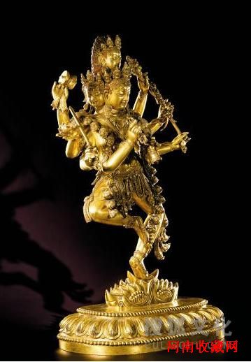 明 宣德 鎏金铜四面八臂观音立像 36.5cm 估价:1500万至2000万港元