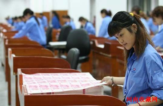 钞票纸选好以后送到印刷车间,数台高速运转着的超级凹印机,就可以把一张张白纸变成人民币。稍微了解点印刷常识的人都知道,印刷开始时总要经过一番试印,最后才能调整到最佳状态。但在印制人民币时,可不能在钞票纸上做试验,一般用的都是普通纸张。因为每一张印钞纸都是有严格数量管理的,一张也不能少。如果正式开印后出了废品,哪怕是揉成了团,也要拿去登记、审查,有一系列的手续!钞票印制出来以后,还要经过裁切工序。因为初“出炉”的产品就像人民日报那般大,上面有24张人民币,这道工序就是把它们裁切开来。最后一道工序就是质检了,它被称为印钞工作中的“重中之重”,这就是王倩现在的工作。