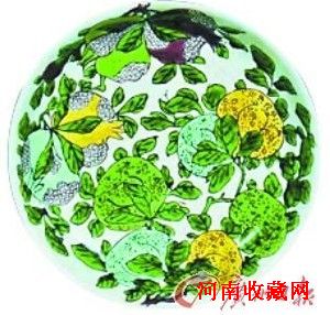 清康熙素三彩花果暗刻龙纹盘