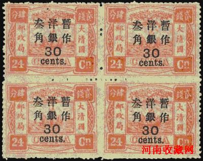 收藏快报讯 作为本年度率先亮相的几场邮票拍卖会,香港INTERASIA拍卖公司的春季邮票拍卖会可谓琳琅满目、珍品荟萃。拍品中,不仅有号称“中国头号珍邮”的清代“小壹圆”邮票,还有首次同场拍卖、充满神秘色彩的“文革”期间禁止发行或本应销毁的“文五珍”邮票全套,包括“孤品”仅存的“全面胜利”邮票,拍卖价将创新高的“大一片红”邮票,以及印有林彪像的“大蓝天”邮票右半枚。而清代古典珍邮有著名的“红印花小字加盖当一元”邮票、“慈寿初版大字短距24分银改作叁角”邮票(俗称红宝石)四方联等。