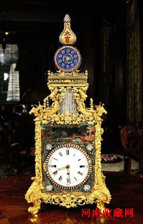 华丽的帝王贡品镀金黄铜、搪瓷自动报时台钟,广州作坊,清朝乾隆年间,估价60万/ 100万美元。 Photo: Sothebychr(39)s. 图片:苏富比拍卖行。