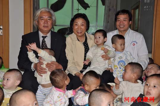 河南省政协副主席、省工商联主席梁静同河南省古玩商会会长蒋继明一同看望脑瘫儿