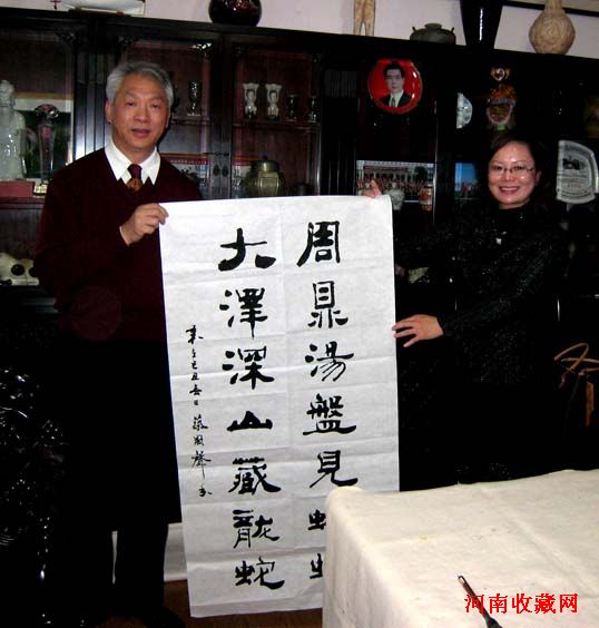 河南省古玩商会会长蒋继明与香港华商总会长陈庆南合影留念