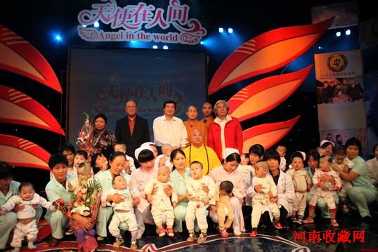 河南省古玩商会会长蒋继明与参加“天使在人间”汇演的人员合影