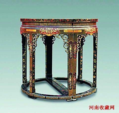 清 大漆描金花鸟寿字纹半圆桌一对