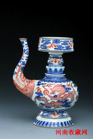 清乾隆 青花矾红彩云龙纹贲巴壶