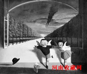 刘野《金光大道》作于1995年,是其早期代表作,此次以1914万港元拍出,成为刘野最值钱的作品。该作品的原型是刘野同年创作的《喜悦》,《喜悦》画中只有画家一人,也没有《金光大道》中的房子,只有一直延伸的大路场景。画家说,他感到原作太绝望太孤单,因此决定给自己找一个伴侣,一所房子。
