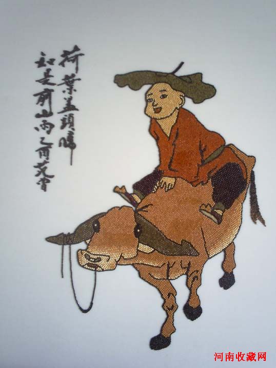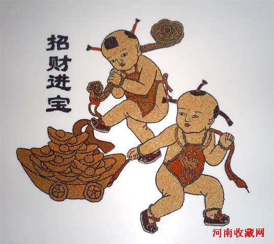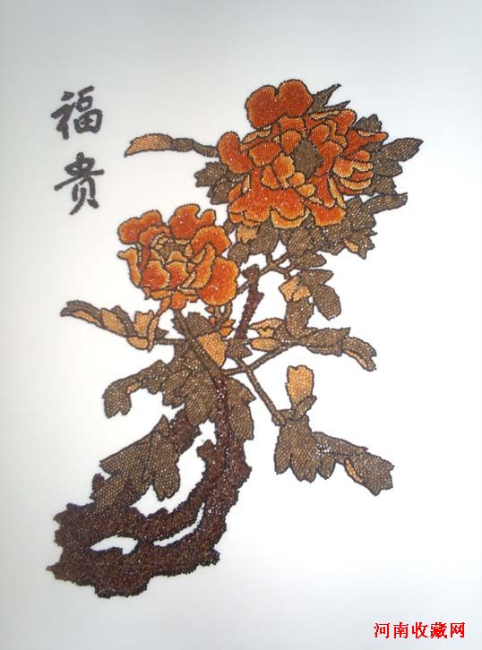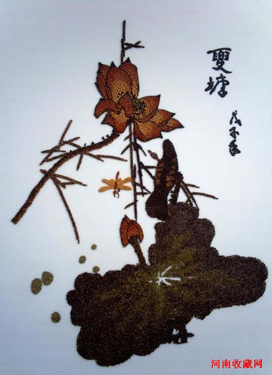五谷画是现代民间艺术的一枝奇葩。他以各类纯天然、带有芳香气息的植物果实,如稻米、芝麻、绿豆、谷粟及各种野生草种为主体,利用其自然形状、色泽,通过粘、贴、拼、雕等手段和构图、线条、明暗、色彩等造型手法,经筛选、浸泡、防腐、自然晒干等十二道工序创作出的一种独特艺术形式。