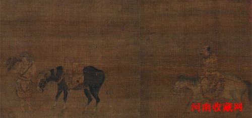 罕见宋画作品《宋人摹郭忠恕四猎骑图》(佚名,宋代),著录于石渠宝笈初编,清宫旧藏,原为册页改为手卷,北京故宫藏《四朝选藻》册中一开旧题赵伯骕所作《番人猎骑图》一段画中人马形象与《宋人摹郭忠恕四猎骑图》第四骑悉同,用笔设色同调,应来自同母本,且有南宋何梦然题识,是明确可信的宋画。此图画风质朴,描绘细腻,设色古雅,形象服饰均表现的一丝不苟,呈现出鲜明的宋画风范。画中形象地记录了边地民族的生活情状,画风严谨,其衣冠器械,均可按图而考,具有相当历史价值。此时期表现番骑的绘画作品遗留至今数量甚少,可见此画珍罕程度。此作南宋末年经何梦然收藏,后长期流落民间,至清代乾隆年间始收入宫廷,1922年被溥仪以赏赐溥杰名义盗运出宫,后流往国外,此次再次现身,十分难得。