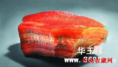 于先生的肉形石和台北故宫博物院的“东坡肉”均为玛瑙质矿石。于先生收藏的这块肉石,经北大宝石鉴定中心检测,为隐晶质结构石英岩石矿物,密度2.6每立方厘米,偏光检查为非均质集合体,系玛瑙原石。
