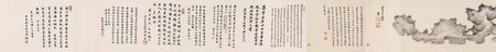 倪元璐《书画合璧卷》极为难得,一诗一画,诗为五言,名曰《古盘吟为范质公吏部》,所书结体端庄,用笔沉稳。画则以淡墨绘将乐砚山,峰峦五起,形状奇妙,轻擦浅染,玲珑剔透。该卷在乾隆年间已被著录在陈焯所著的《湘管斋寓赏编》第四卷中,上海书店也为之出版拉页式单行本,童衍方先生为单行本写有后记。单行本出版后,有人从上海将书寄至香港赠送董桥先生。董桥先生观册大喜,作一篇《倪元璐的字真帅》的文章,娓娓叙说与此册相关的人和事,其中叙及“一九六八年,张大千将旧藏倪元璐写的《古盘吟》,送给了台静农,并照台静农的嘱咐补画了一幅《石交图》,提醒台先生把乾隆年间陈焯所著《湘管斋寓赏编》里著录的倪元璐书画合璧卷考证文字抄在卷末。那是说,倪元璐生前为好友范景文抄录《古盘吟》画了石交图,世称书画合璧卷……”可惜,张大千和台静农二位先生生前都无缘见到这个手卷,真是憾事。1990年台静农先生将张大千送赠的旧藏倪元璐《古盘吟》捐给了台北“故宫博物院”。(董桥先生的文章见2008年11月2日东方早报)。中国书协研究部副主任刘恒先生也为此卷撰有《贞石见风骨,诗笔溢清芳——读倪元璐书画合璧卷》的专门文章(见本期《通讯》)。毫无疑问,《书画合璧卷》是一件值得高度关注的倪元璐精品手卷。