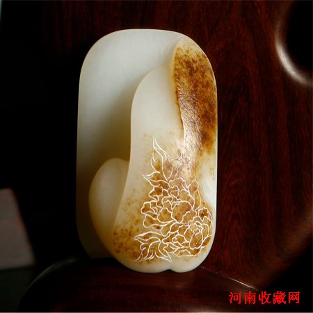 杨曦是当代玉雕界锐意创新的杰出代表,他的作品从不局限于某一种状态、某一种题材、某一种表现形式。他更多的是挖空心思想一些其它的东西,来充实丰富其创作。《彩绘人生》描绘了一位少女婀娜的背影,在玉料侧面的一片黑皮上,杨曦以阴线浅雕的方式刻画出少女胴体上的绚丽彩绘,瑰丽的牡丹犹如少女涌动的青春,毫不吝惜自己的美丽,尽情绽放。底座被蕴意深远地设计成了一块调色板:人生好像玉一样,生来就要不断地接受撞击、冲刷,美好的人生是不应随波逐流的,短暂的人生需要把握在自己手中,去悉心描绘,以吾之手,绘吾绚丽人生。一件美玉引人无限思考。