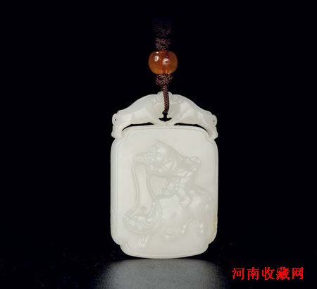 被誉为当代陆子冈的中国工艺美术大师刘忠荣总能将传统题材做出别具一格的韵味,《驾驭》线条刚柔相济,牌头被设计为一对抵牛,在大师疏朗挺拔的刀法下,两牛健硕的肌肉感在薄薄玉牌上喷薄而出,牌面上牧童放牧归来,牧童在牛背上既非坐亦非卧,以站在牛背之上的造型,精妙地诠释了牧童的喜悦心情。背书刀法枯拙有力,笔锋飘逸流畅,既有柳公权的劲道,又不失颜真卿的丰腴,使此作诗画相承,情景交融。