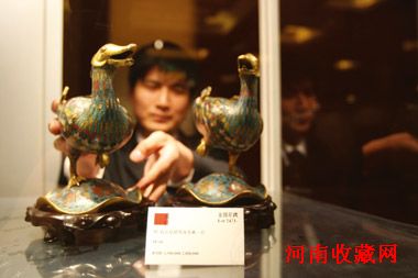 皇室专用,成为明清掐丝珐琅彩在市场中一直价格坚挺的一个主要原因。而存世稀少,则成为瓷胚珐琅彩缔造拍卖纪录的另一个原因。“数量稀少。据《清宫活计档案》中有记载的不过三四百件,台北故宫博物院约藏有200多件珐琅彩瓷器,北京故宫博物院藏40余件,还有少部分零散于世界各地博物馆及私人手中。因为稀少,珐琅彩瓷器成为‘阳春白雪’备受藏家关注。”知名收藏家马未都先生这么说。2006年秋拍中,一只由张宗宪先生收藏过的清乾隆御制珐琅彩杏林春燕图盌碗,在香港佳士得拍卖会上以1.53亿元的价格,创造了中国珐琅彩瓷器拍卖世界纪录。而在2007年的香港苏富比秋拍中,一只清乾隆御制珐琅彩“古月轩”题诗花石锦鸡图双耳瓶也以1.2亿元天价成交。