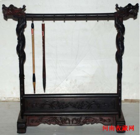 本场拍卖会的亮点除了上述几件重器的无底价拍卖,还精选了用老挝红酸枝制作的书柜和书桌组成的书房4件套,用材考究、雕工精美,居家和办公两用皆宜。用小叶紫檀老料制作的龙头笔架,也是难得一见的佳品。