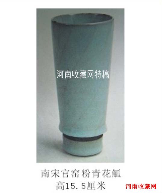 五代,北宋瓷器多祭器,酒具、茶具、食具。从发掘实物看,豆青、豆绿器皿口径在10-15厘米之间。用垫圈烧,器底满釉。五代至北宋本没有陈设工艺瓷器,那时没有案、几、桌、椅、花架,多用坐墩。这一点也不相符。南宋,官窑有花插和觚(盛酒),简约到极至(看标本)。与此比对,也不相符。