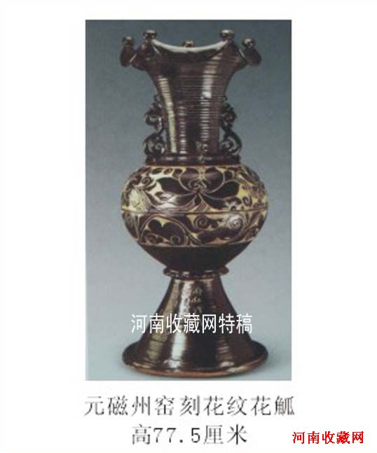 (3)《燕闲清赏笺》记述:“宋官窑器,形有觚、有立戈觚,周之小圜觚、素觚。元末若新烧宛不及此近年诸窑美。去诸窑远甚,有粉青色者,即光润者为绿色,且索大价。”说明宋、元已有花觚,但绿色贵,是盛酒器皿。