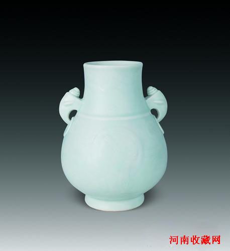 清乾隆粉青釉凸夔龙纹鸠耳尊