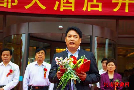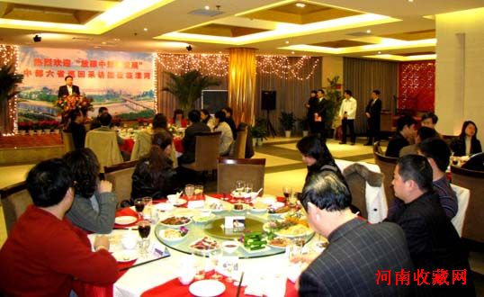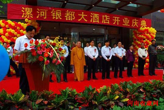 中部六省采访团莅临酒店,漯河市委、市政府举行欢迎宴会。图为漯河市委书记靳克文致欢迎词