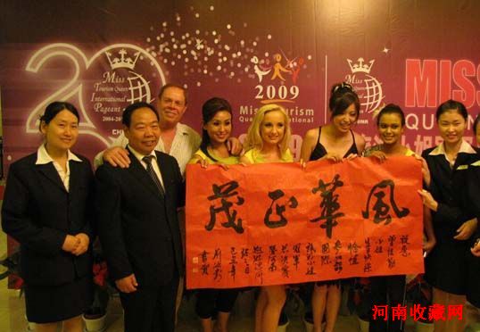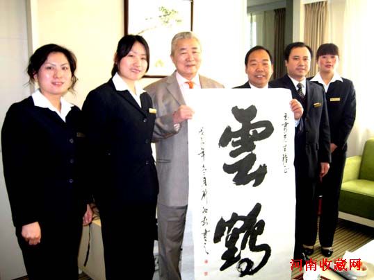 酒店总经理荆汝彭携酒店管理人员向全国政协委员、香港的陈玉书先生赠送书法作品
