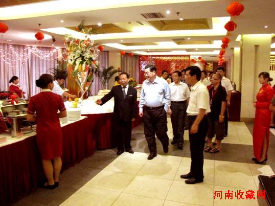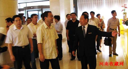 酒店总经理荆汝彭(右)陪同原省政协副主席、现豫商联合会会长陈义初(中间)、市委书记靳克文(左)视察酒店豫商大会接待准备情况