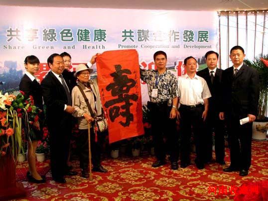 酒店总经理荆汝彭携酒店管理人员向第七届食博会期间过生日的台胞姚春筠老太太赠送书法以表祝贺