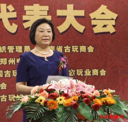 省工商联梁静主席代表省工商联、省总商会向大会致词,她指出:近年来,河南省古玩商会在第一届领导班子的团结带领下,不断加强自身建设,认真履行商会职能,为行业健康有序发展做了大量卓有成效的工作,得到了有关领导和相关部门的肯定和赞誉,受到了社会各界的广泛好评。针对商会换届后的工作,梁静主席提出了三点希望和要求:一是不断加强自身建设。二是积极创新服务平台。三是充分发挥纽带作用。最后,梁主席希望省古玩商会以这次换届为契机,认真贯彻落实中央关于深化文化体制改革、推动文化大发展大繁荣重要指示精神,以科学发展观为指导,奋力抢抓发展机遇,团结拼搏,务实进取,开拓创新,扎实工作,进一步促进我省古玩行业的健康发展,为加快我省文化资源强省建设做出新的更大的贡献。