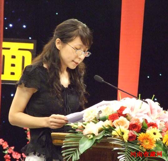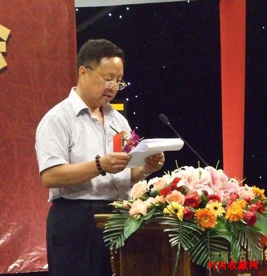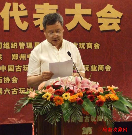 河南省古玩商会秘书长郭华宣读上届古玩商会工作报告
