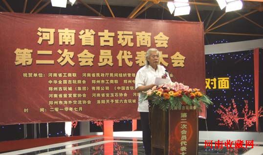2010年7月28日上午,河南省古玩商会第二次会员代表大会在郑州北茶城演播厅隆重举行,省政协副主席、省工商联主席梁静出席会议,参加会议的还有河南省古玩商会第一届会长蒋继明、各位副会长,各地会员企业和分会代表及理事会员代表共145人。郑州电视台、河南商报、东方今报、《中国古玩》网、河南收藏网等新闻媒体以及社会各界嘉宾也应邀出席了会议。会议由副会长王健强主持。