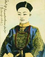 清德宗光绪皇帝名爱新觉罗·载湉,同治十年(1871年8月14日)出生于北京宣武门太平湖畔醇王府光绪皇帝,其父奕譞是道光帝的第七子,其母是慈禧的胞妹,这种特殊的家庭背景,使他在同治病故之后被指定为皇帝。 1900年义和团反洋起事,导致八国联军攻入北京。慈禧挟光绪帝逃亡西安,次年签定天津条约后才回到北京,光绪仍被慈禧软禁。 光绪帝比慈禧只早死一天,他的死因没有历史定论。一说他为慈禧毒死,一说他自然病死;2008年对光绪头发的检验证实光绪帝死于急性砒霜中毒,但凶手是谁仍有待考证。 光绪帝无后,慈禧太后即以其侄、第二代醇亲王载沣之子溥仪为帝。 光绪帝没有勇气冲破封建伦理思想的束缚,“天颜戚戚,常若不悦”,心境悲怆,终其一生是屈辱和哀怨的悲剧命运。八国联军占领北京时,慈禧只好挟光绪帝仓皇逃到西安。义和团运动后,各地反清武装起义此起彼伏,民主革命思潮在全国广泛传播,清王朝濒于覆灭的边缘。