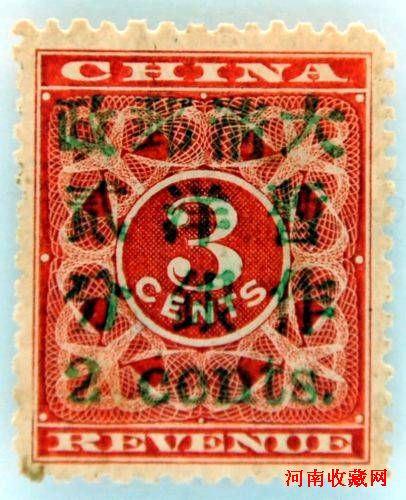 7月27日媒体预展会上拍摄的极为罕见的1897年清朝红印花绿色加盖邮票小字2分新票。该枚雅称“绿衣红娘”的邮票存世可考者仅七枚,拍卖前估价800万港元。7月31日至8月1日,香港Interasia Auctions邮票拍卖公司将在香港柏宁酒店举行中国邮票珍品大型拍卖会。本次拍卖会共有2,200多件邮票及邮政古董拍卖品,估计其总成交额将超越4,500万港元。多项拍卖品均极为珍罕,当中包括中国清朝经典邮票以及1911年至1949年中华民国时期的“民国五珍”。