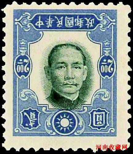 7月27日媒体预展会上拍摄的中华民国时期的“民国五珍”之一的1941年纽约版孙中山像2圆中心倒印错体新票。