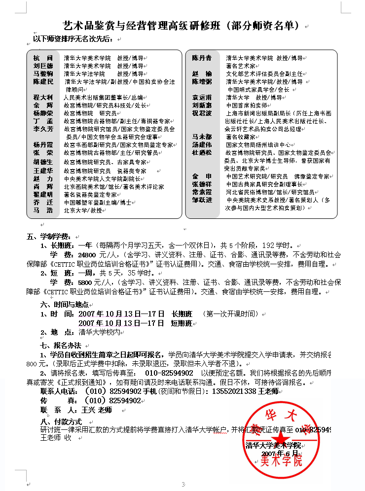 清华大学第九届艺术品鉴赏与经营管理高级研修班