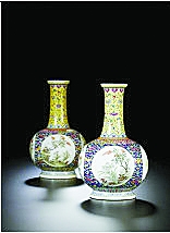 据了解,本次拍品包括多个来源显赫的私人珍藏,如著名鉴赏家和收藏家戴润斋的清宫御瓷收藏,以及其他中国书画和当代中国艺术的私人珍藏。其中,“中国瓷器及工艺品”板块格外受关注,“瑰辞神笔——重要私人清宫御制工艺珍藏”中的一件乾隆帝御宝交龙钮白玉玺,印文“信天主人”,12.9厘米见方,估价2500万至3000万港元;“花赏瑶华——巴黎名藏中国艺术品专拍”中,清雍正时期的御制金胎画珐琅浅绿地“丹凤呈祥”图盖壶估价2000万至3000万港元;“彩华腾瑞——戴润斋清宫御瓷珍藏”中一对清乾隆时期的御制珐琅彩“祥云瑞蝠”开光式“四季花卉”图纸捶瓶创下估价的全场纪录,分别为6000万至8000万港元及800万至1000万港元。