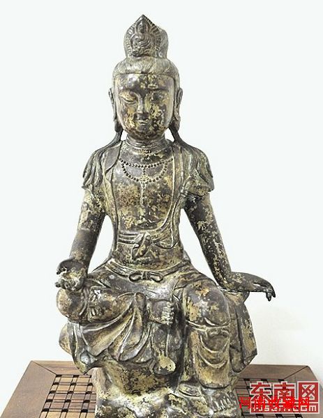 据介绍,这尊铜铸观音原本供奉在江西一寺庙,“文革”期间被当地村民抱走。五年前,厦门收藏家去江西收购农产品时发现。