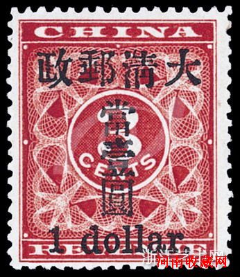 1897年清朝红印花3分加盖改值小字当壹圓邮票