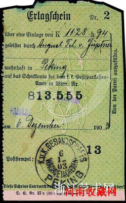 1903年奧地利邮政汇票收据