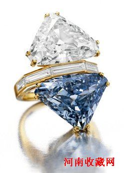在正式拍卖前,这枚双钻双色戒指将在香港和伦敦进行巡回展示。超过10克拉的顶级蓝钻极为罕见,预计只占全球钻石总产量的百万分之一。世界上最大的蓝钻为45.52克拉的“希望钻石”,目前被美国国家历史博物馆收藏。这些著名蓝钻多产于南非。