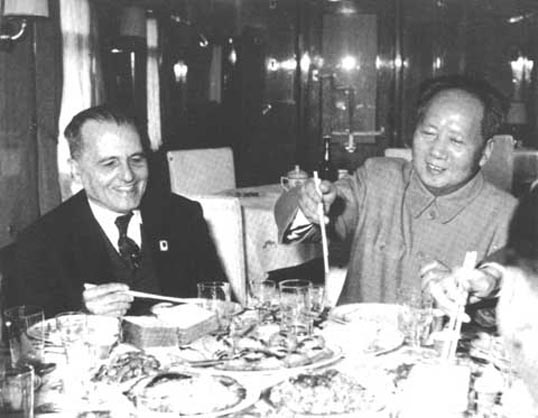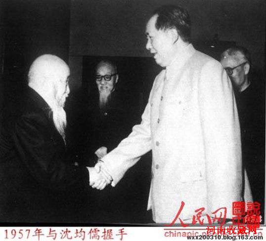 1955年10月:毛泽东、周恩来、廖承志在中南海会见日本恢复日中邦交国民议会议长久原房之助