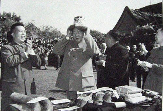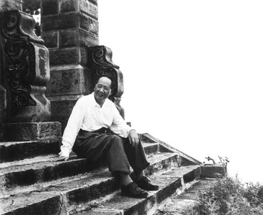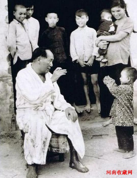 1958年:毛泽东畅游湘江之后,在农家门口小憩