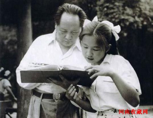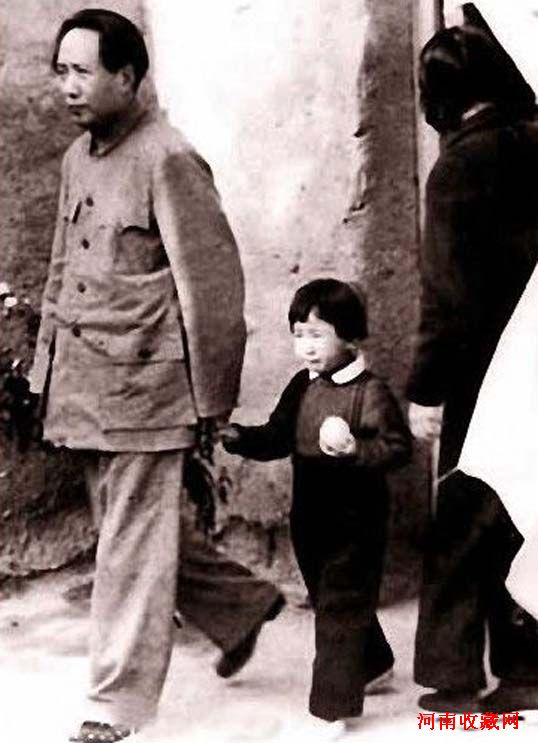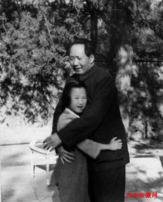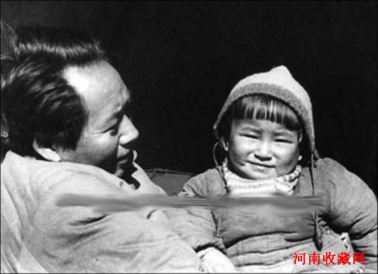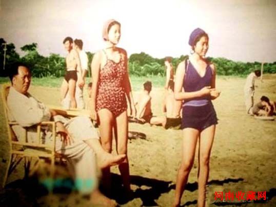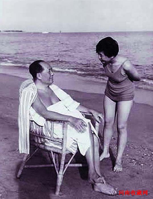 1954年毛泽东和女儿李纳、李敏在北戴河